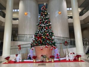 2025年11月26日(水) ブログ < お知らせ クリスマスツリー✨ 入居者様にクリスマスの雰囲気を味わってもらいたいと、今年もヴィラノーヴァ大谷エントランスに、大きな大きなクリスマスツリーが設置されました。職員みんなで頑張って完成させましたよ!! とってもキレイですね(*^▽^*)