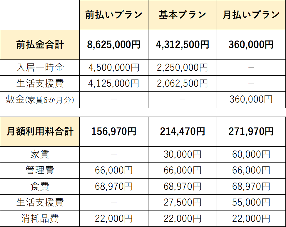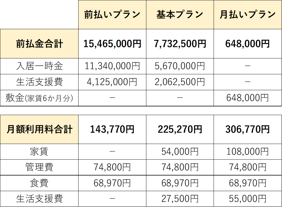 ご入居後に家賃(月払いの場合のみ)管理費や食費、一般居室の水道・光熱費などご入居者がお支払いいただくべき費用を負担できること。